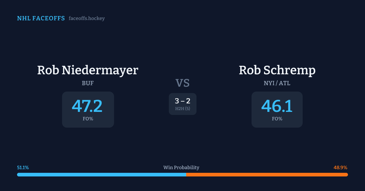 Rob Niedermayer vs Rob Schremp — Faceoff Head-to-Head