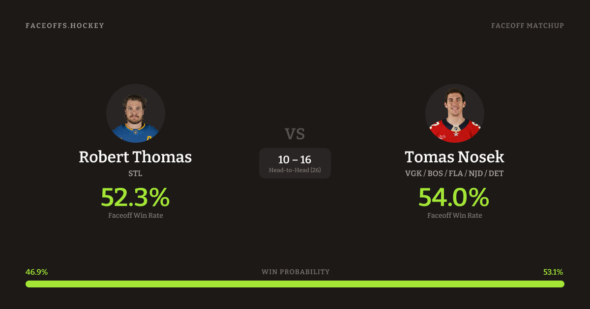 Robert Thomas vs Tomas Nosek — Faceoff Head-to-Head