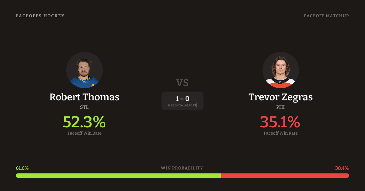 Robert Thomas vs Trevor Zegras — Faceoff Head-to-Head