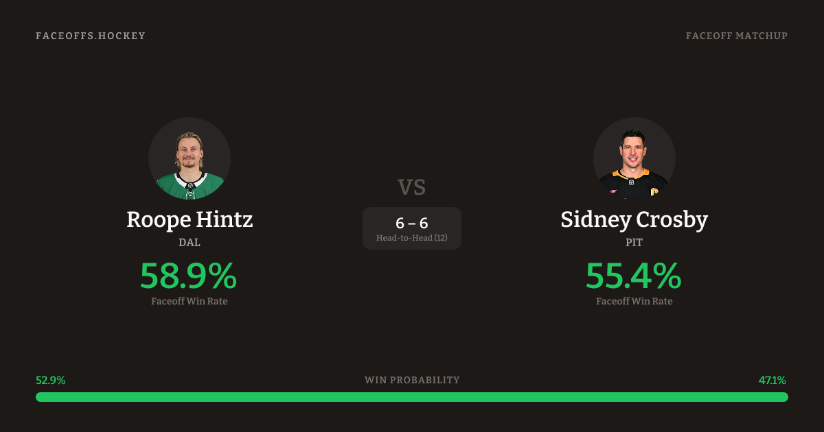 Roope Hintz vs Sidney Crosby — Faceoff Head-to-Head