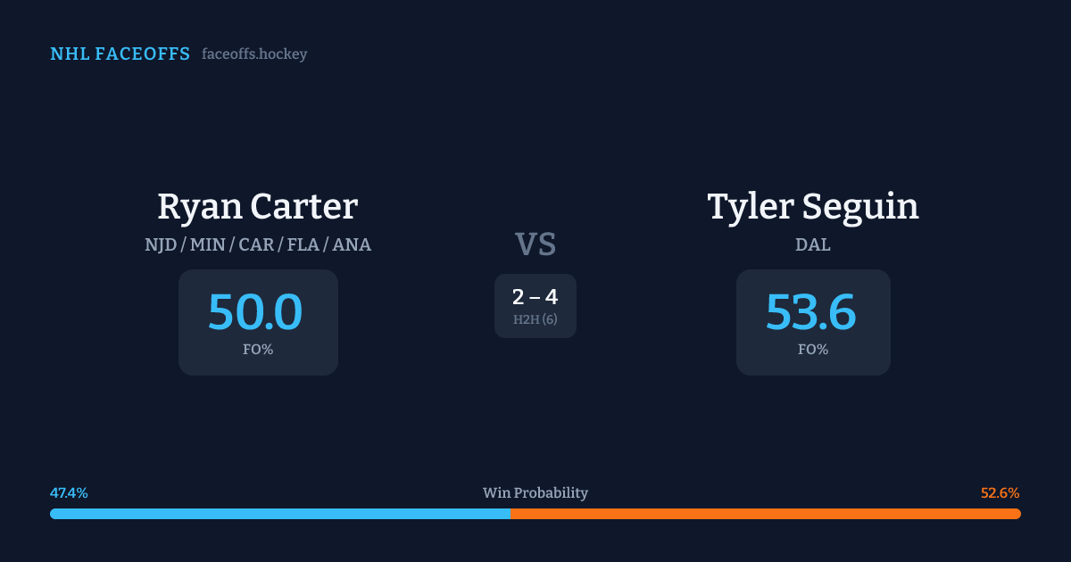 Ryan Carter vs Tyler Seguin — Faceoff Head-to-Head