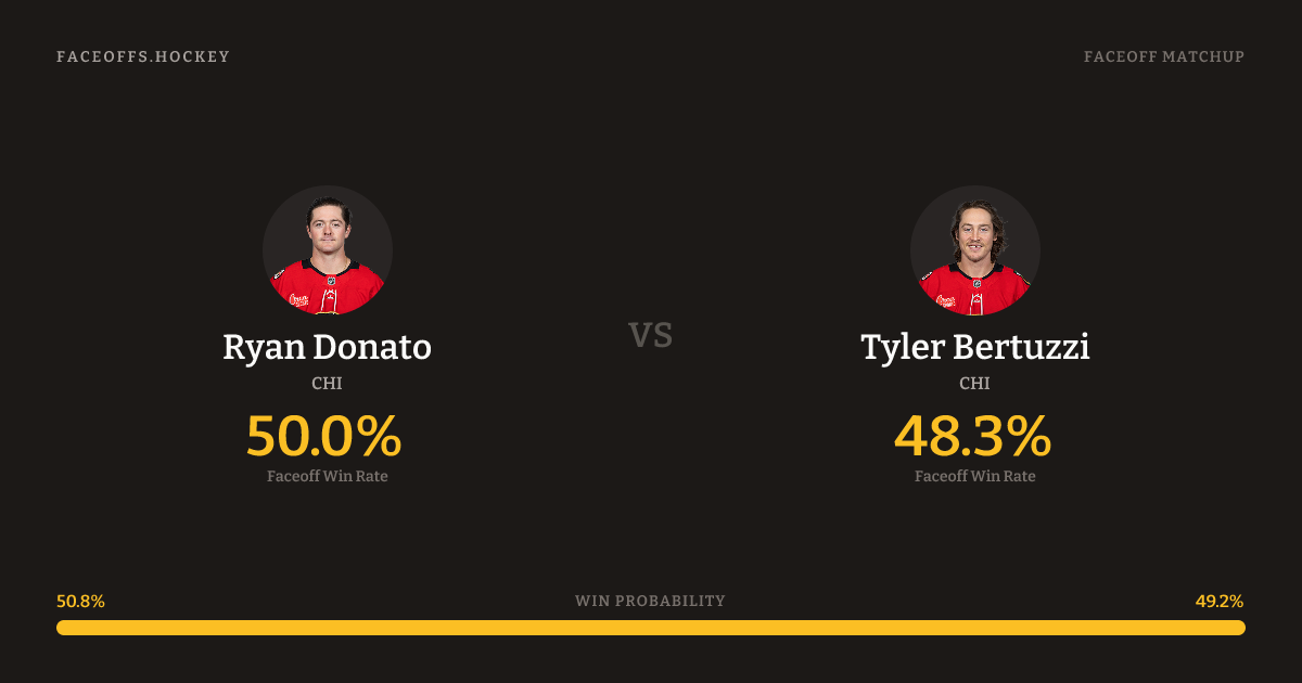 Donato shoots left. Bertuzzi is 48.3% vs left-shot opponents (58).