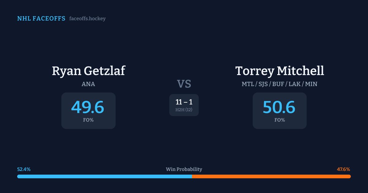 Ryan Getzlaf vs Torrey Mitchell — Faceoff Head-to-Head