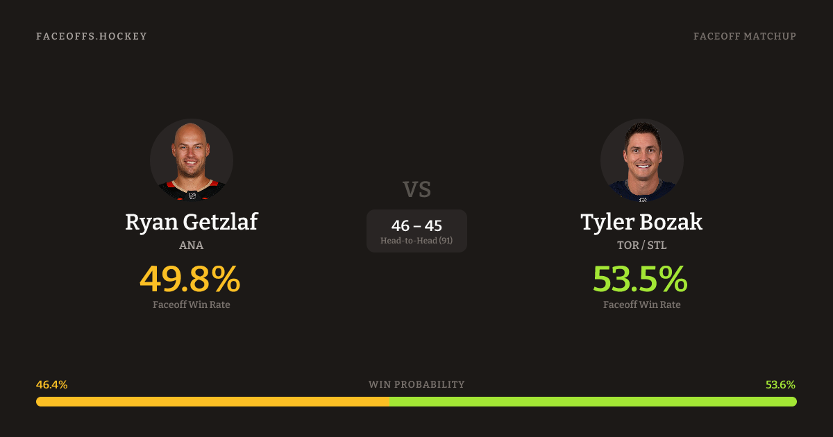 Ryan Getzlaf vs Tyler Bozak — Faceoff Head-to-Head