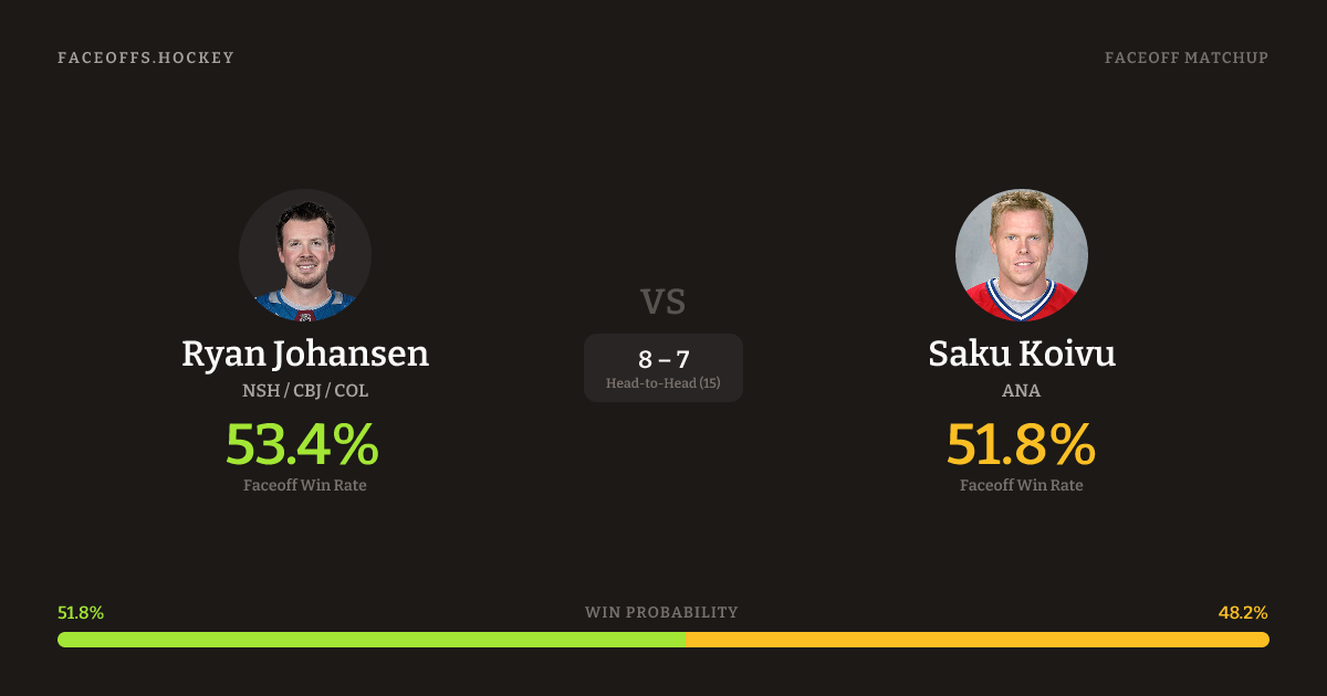 Ryan Johansen vs Saku Koivu — Faceoff Head-to-Head
