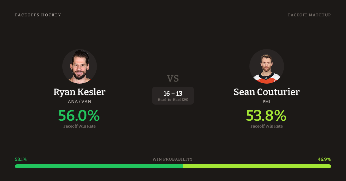 Ryan Kesler vs Sean Couturier — Faceoff Head-to-Head