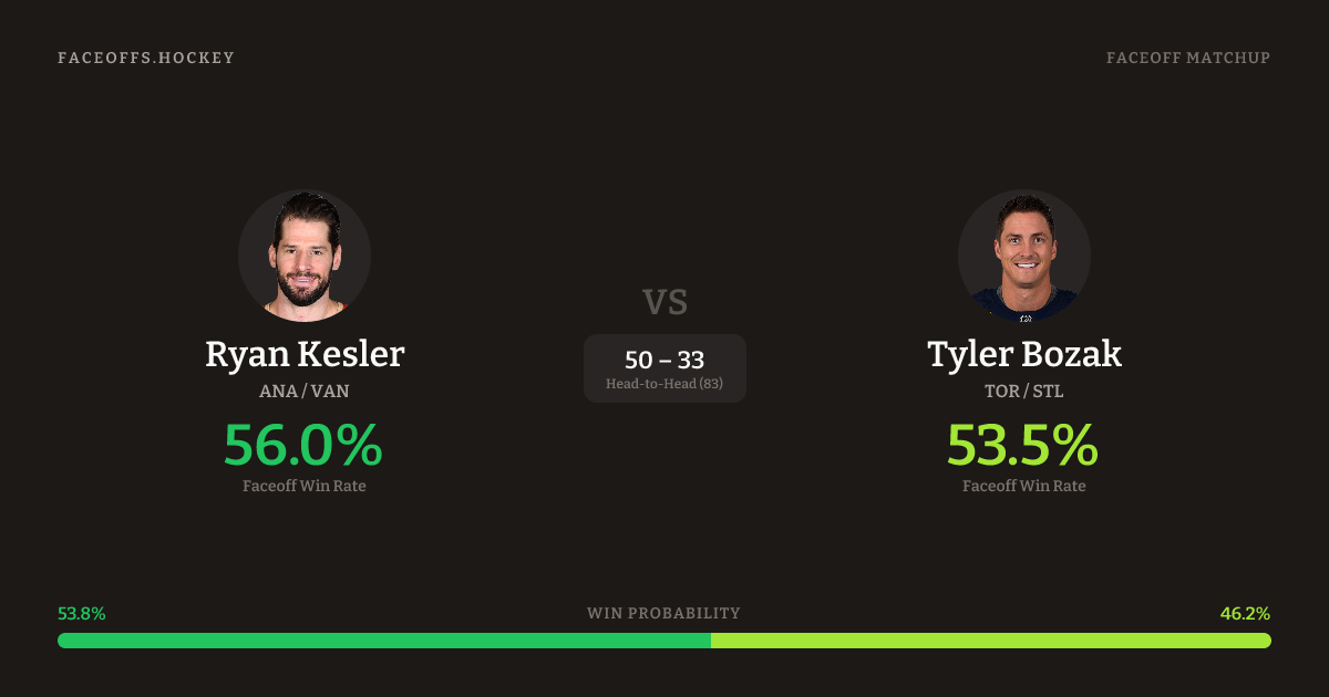 Ryan Kesler vs Tyler Bozak — Faceoff Head-to-Head