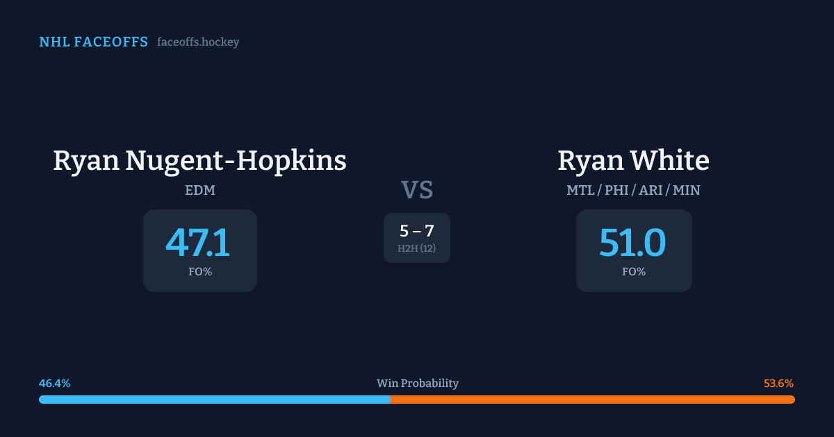 Ryan Nugent-Hopkins vs Ryan White — Faceoff Head-to-Head
