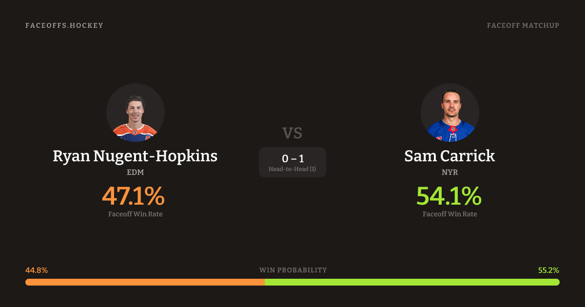 Ryan Nugent-Hopkins vs Sam Carrick — Faceoff Head-to-Head