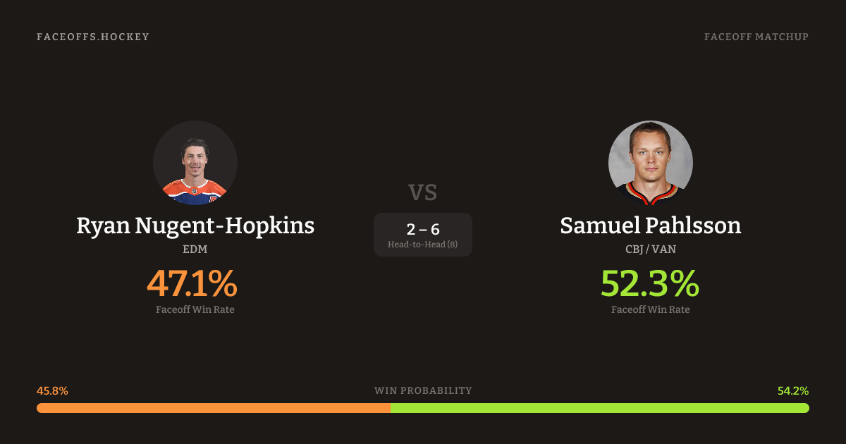 Ryan Nugent-Hopkins vs Samuel Pahlsson — Faceoff Head-to-Head