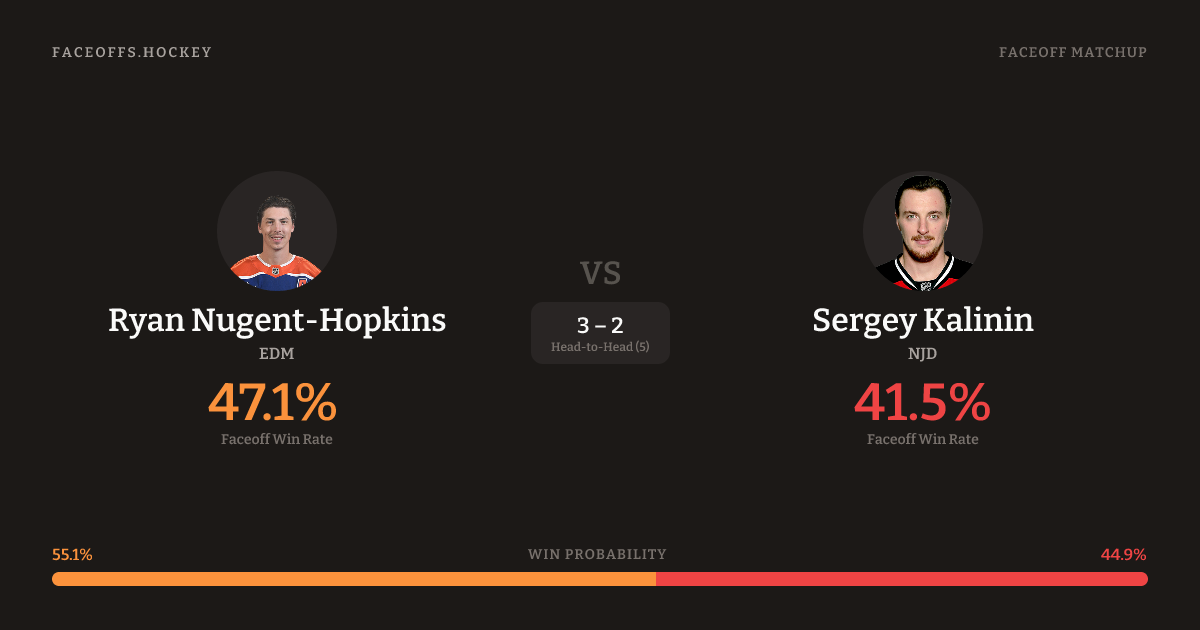 Ryan Nugent-Hopkins vs Sergey Kalinin — Faceoff Head-to-Head