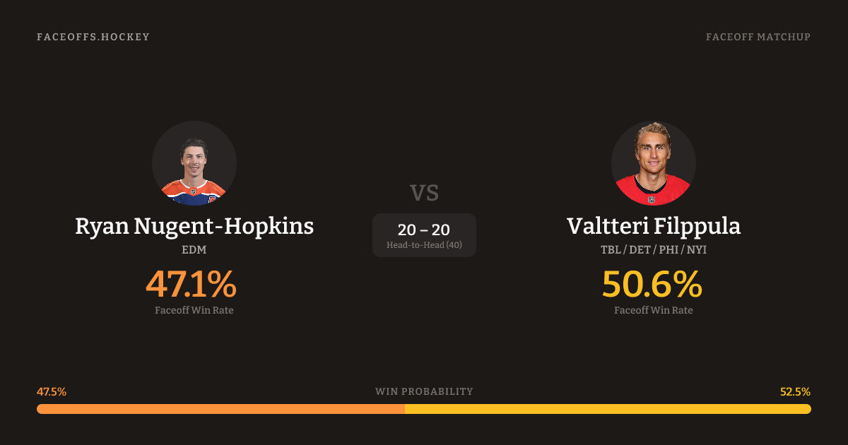 Ryan Nugent-Hopkins vs Valtteri Filppula — Faceoff Head-to-Head