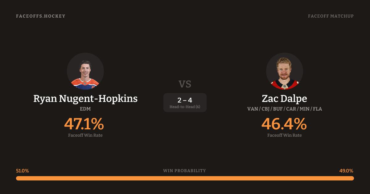 Ryan Nugent-Hopkins vs Zac Dalpe — Faceoff Head-to-Head