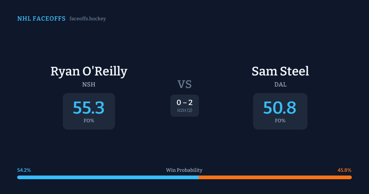 Ryan O'Reilly vs Sam Steel — Faceoff Head-to-Head
