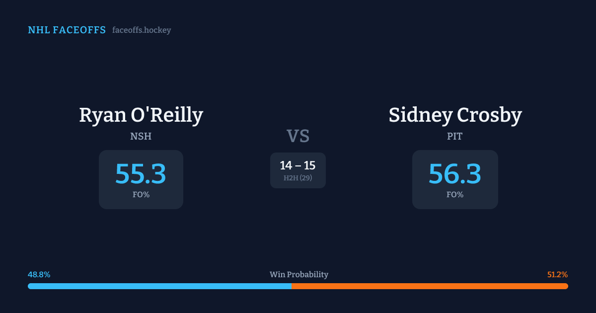 Ryan O'Reilly vs Sidney Crosby — Faceoff Head-to-Head