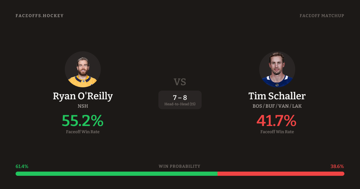 Ryan O'Reilly vs Tim Schaller — Faceoff Head-to-Head