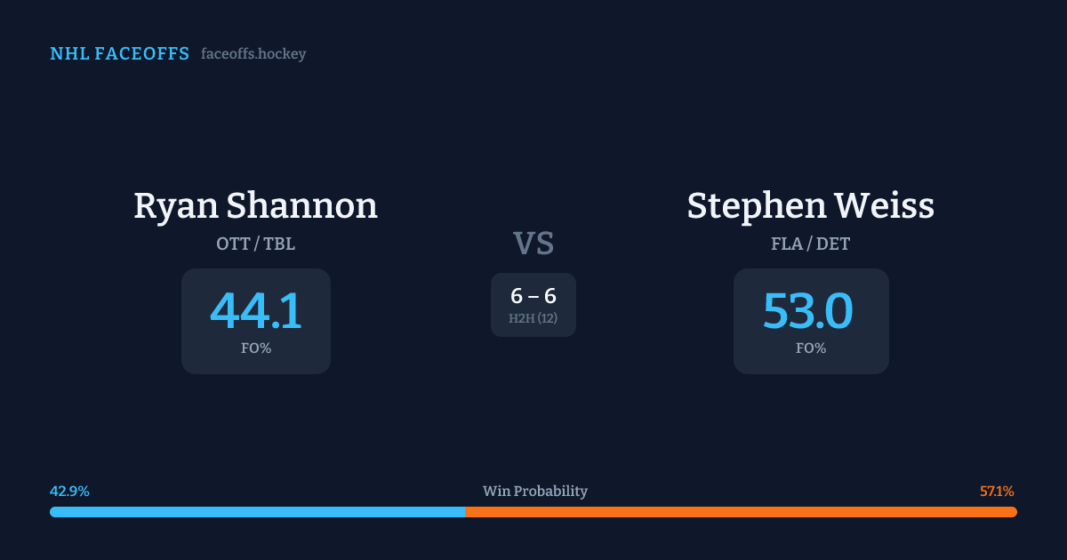 Ryan Shannon vs Stephen Weiss — Faceoff Head-to-Head