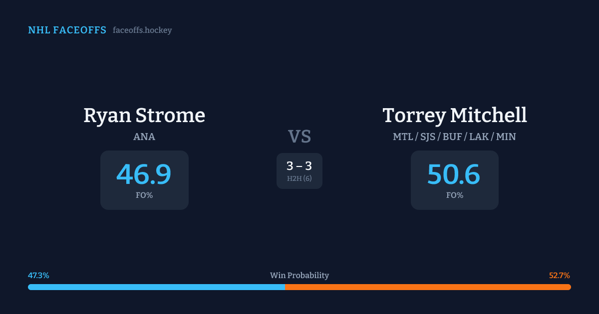 Ryan Strome vs Torrey Mitchell — Faceoff Head-to-Head