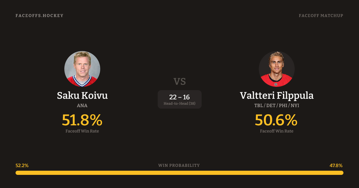 Saku Koivu vs Valtteri Filppula — Faceoff Head-to-Head