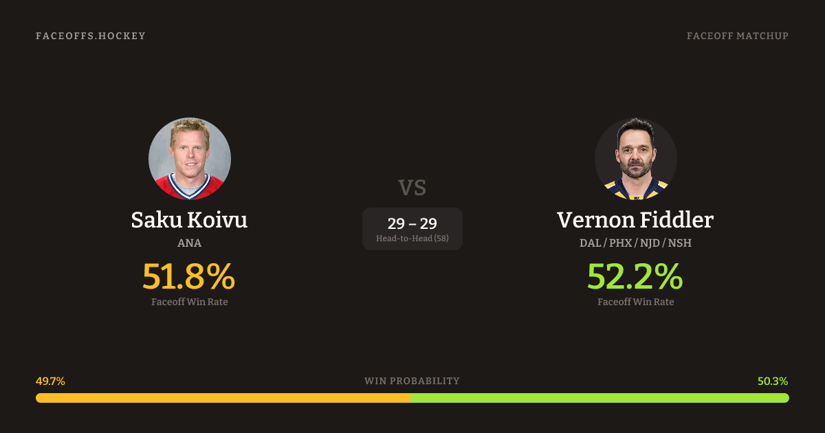 Saku Koivu vs Vernon Fiddler — Faceoff Head-to-Head