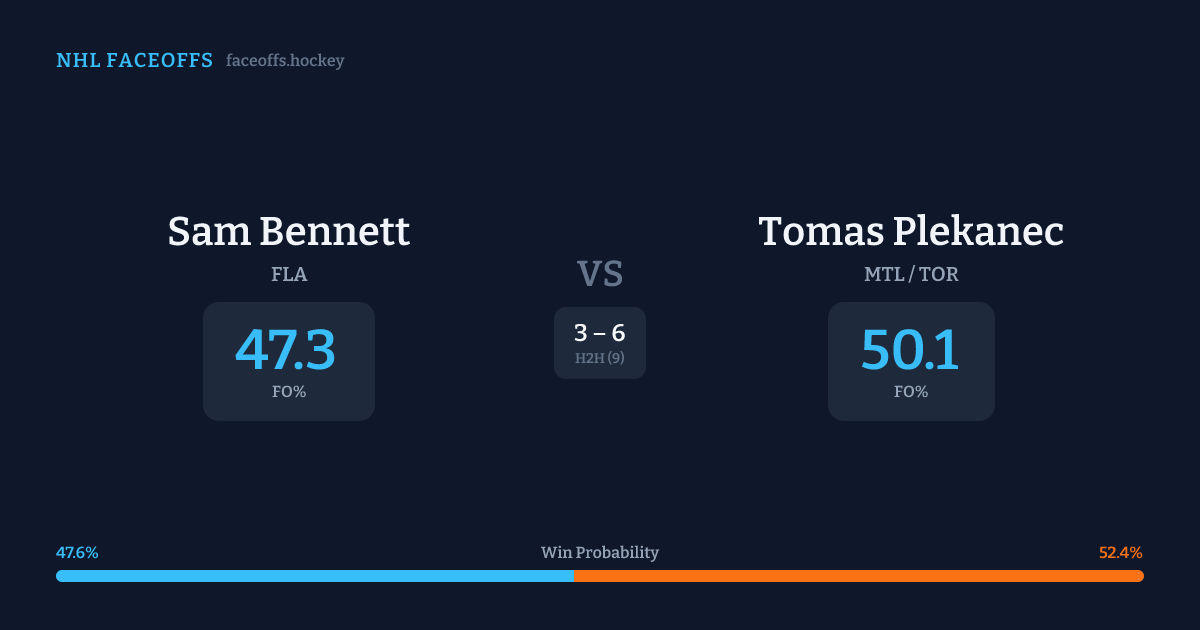 Sam Bennett vs Tomas Plekanec — Faceoff Head-to-Head