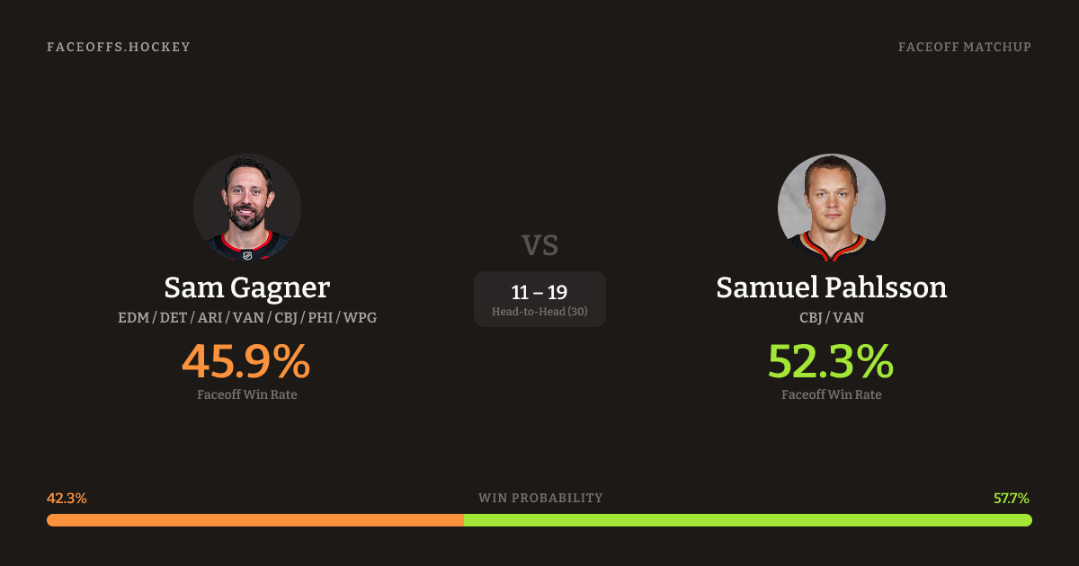 Sam Gagner vs Samuel Pahlsson — Faceoff Head-to-Head