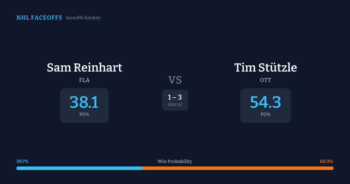 Sam Reinhart vs Tim Stützle — Faceoff Head-to-Head