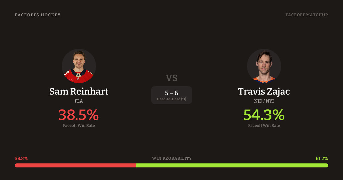 Sam Reinhart vs Travis Zajac — Faceoff Head-to-Head