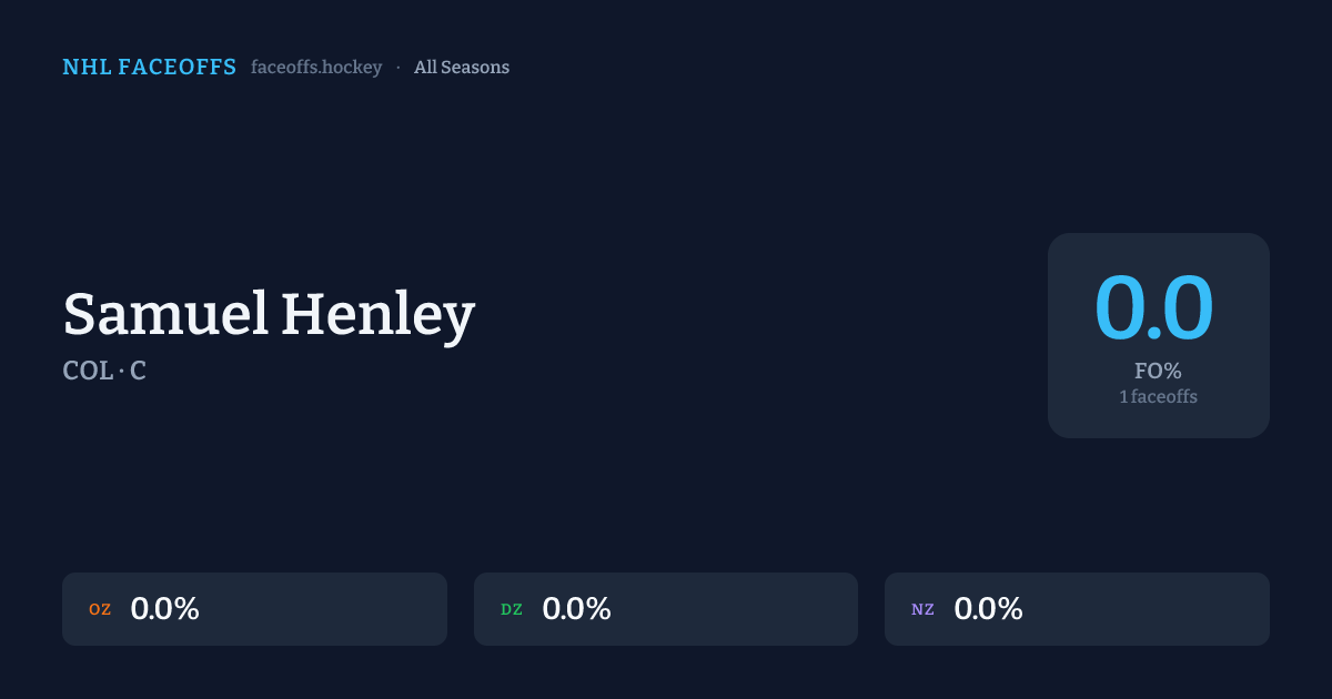 Samuel Henley has a career faceoff win percentage of 0.0% across 1 faceoffs. Best zone: Neutral (0.0%).