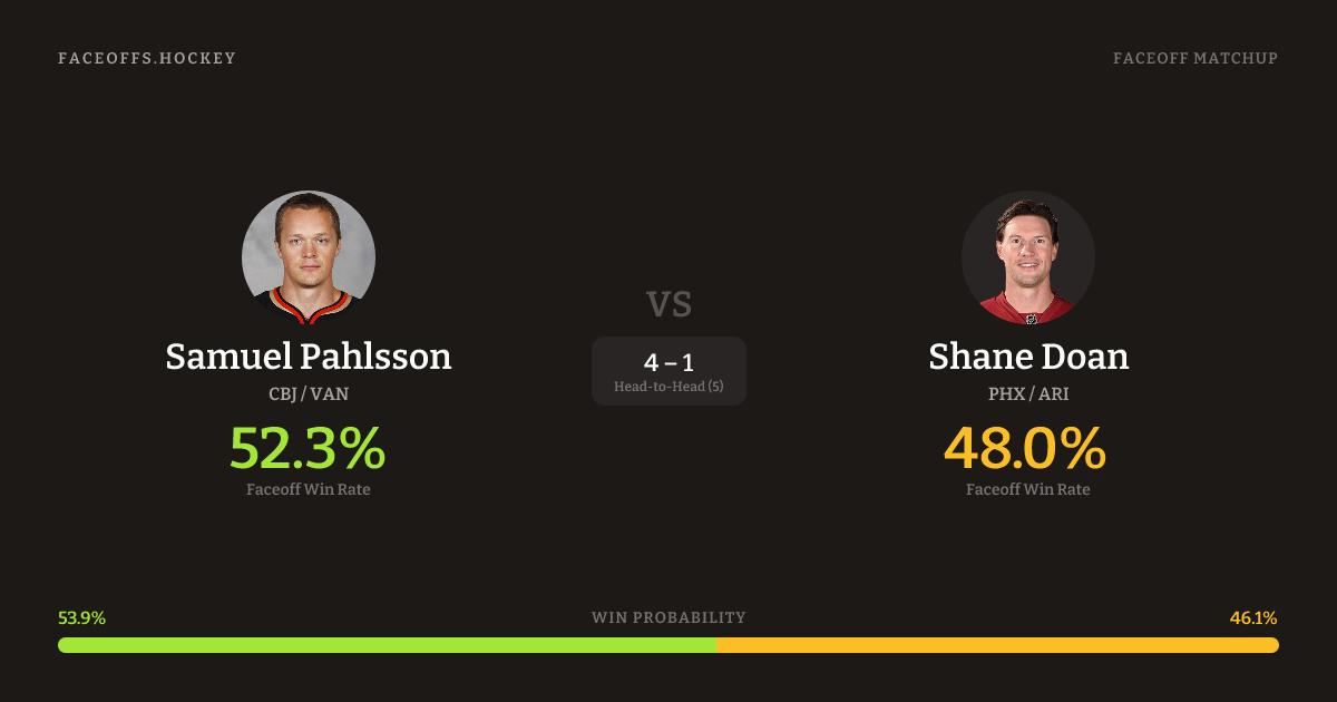 Samuel Pahlsson vs Shane Doan — Faceoff Head-to-Head