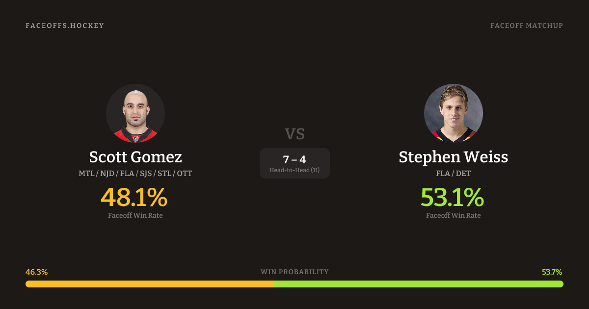 Scott Gomez vs Stephen Weiss — Faceoff Head-to-Head