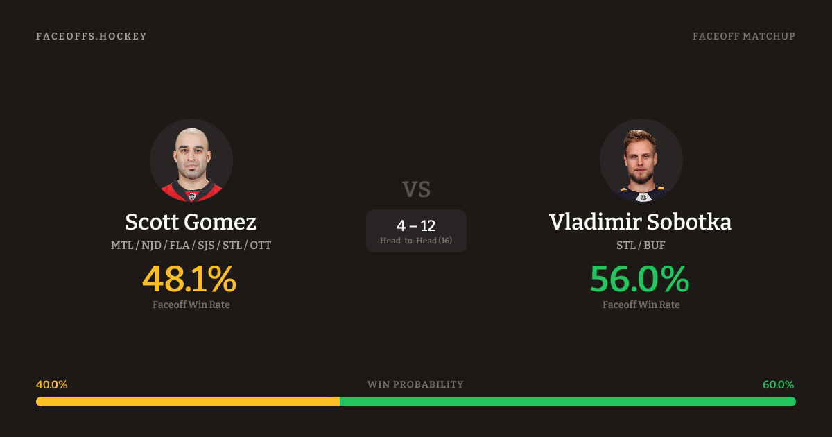 Scott Gomez vs Vladimir Sobotka — Faceoff Head-to-Head