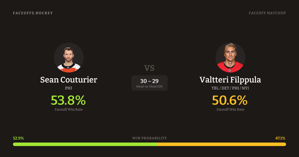 Sean Couturier vs Valtteri Filppula — Faceoff Head-to-Head