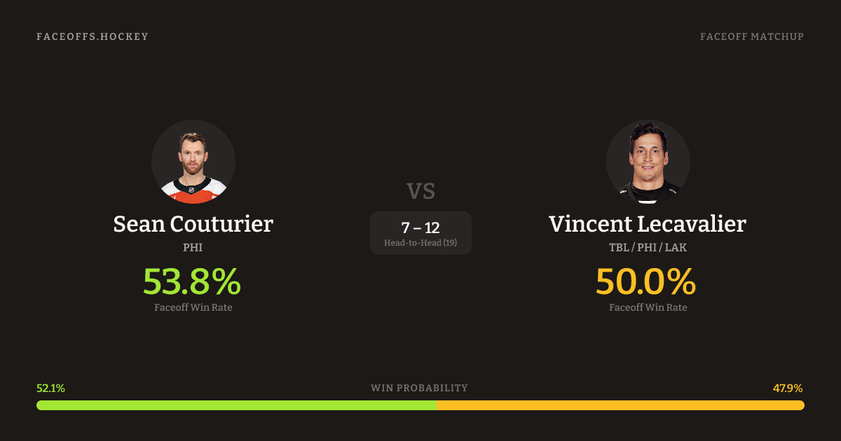 Sean Couturier vs Vincent Lecavalier — Faceoff Head-to-Head