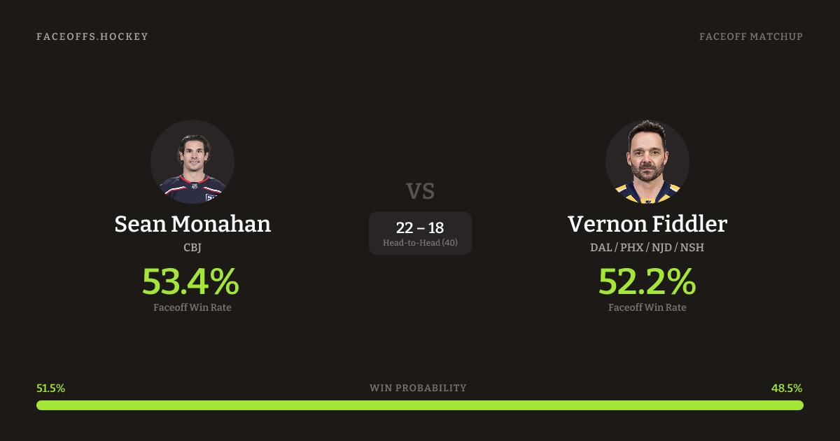 Sean Monahan vs Vernon Fiddler — Faceoff Head-to-Head