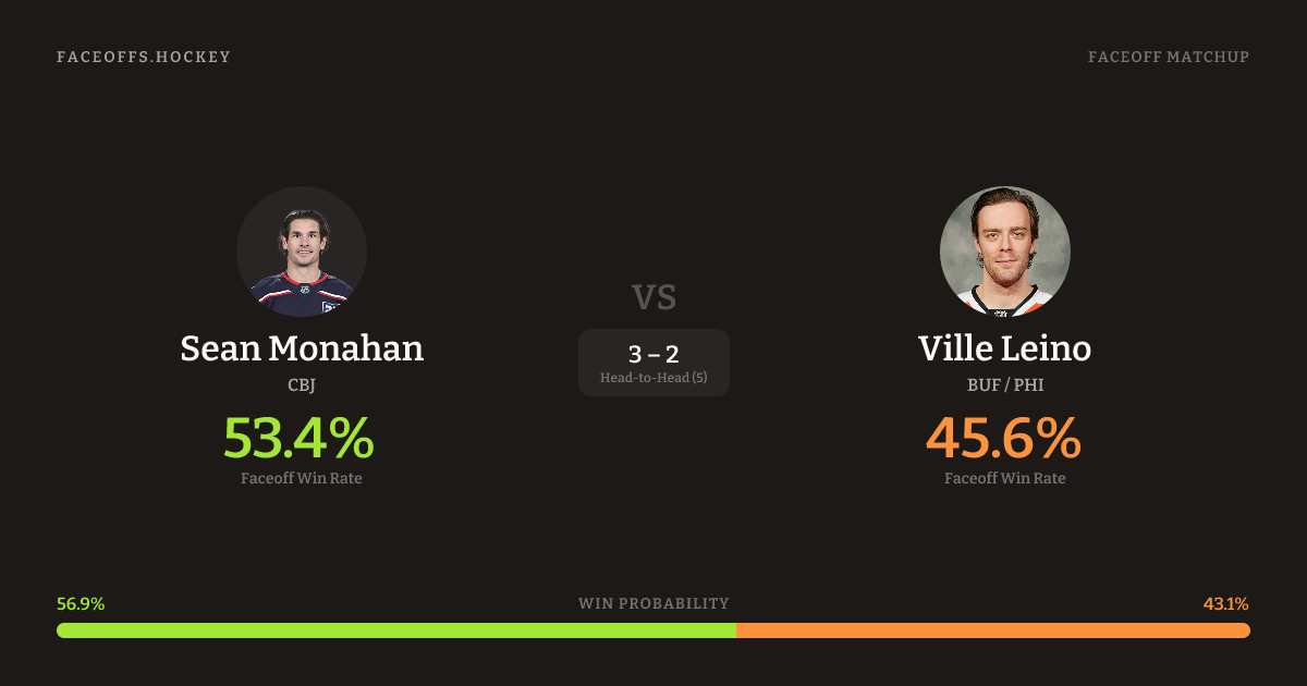 Sean Monahan vs Ville Leino — Faceoff Head-to-Head