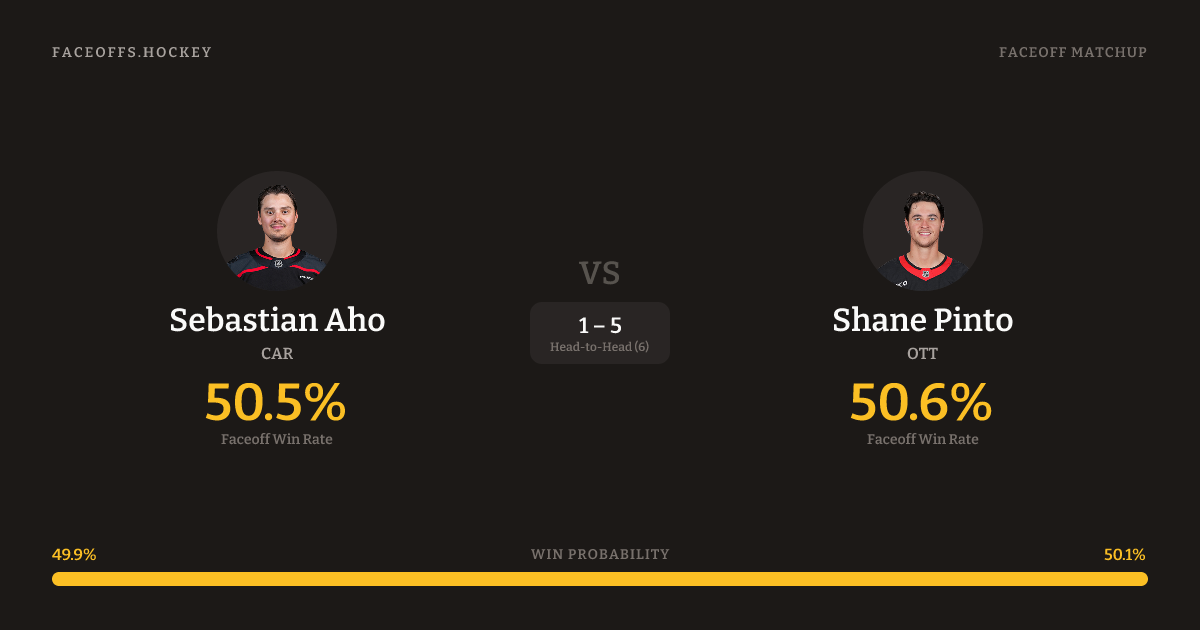Sebastian Aho vs Shane Pinto — Faceoff Head-to-Head