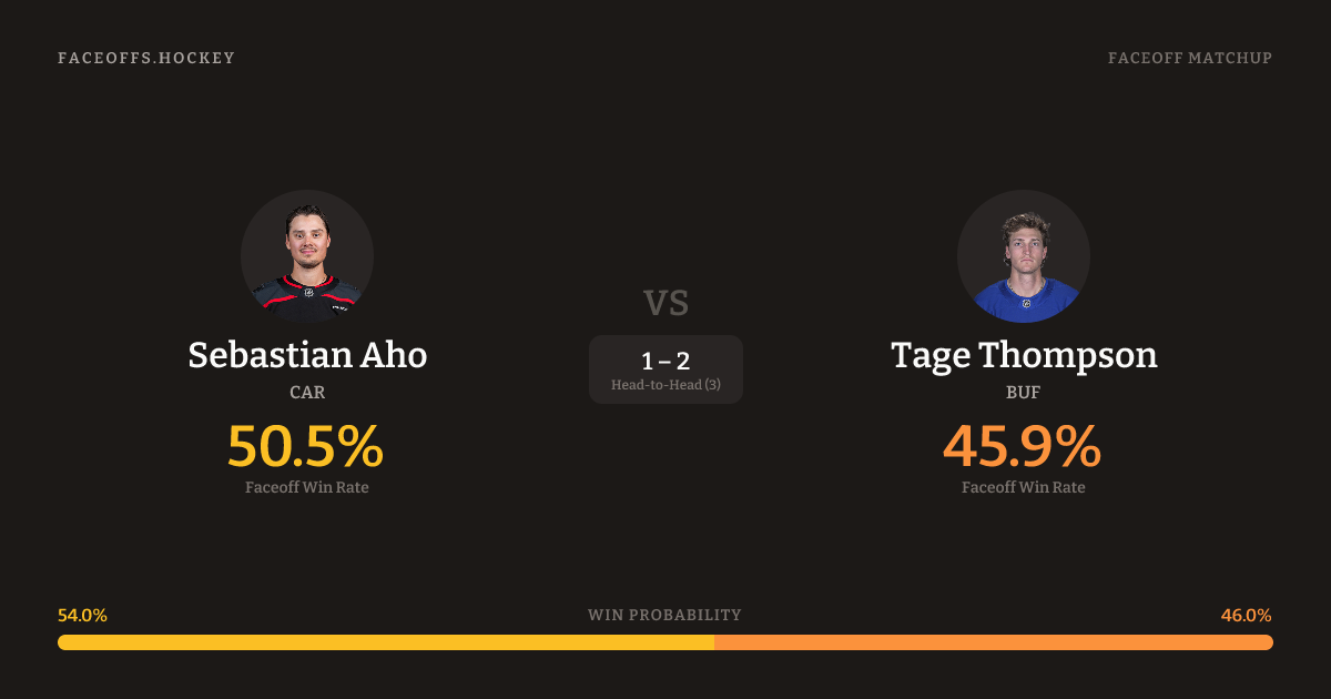 Sebastian Aho vs Tage Thompson — Faceoff Head-to-Head