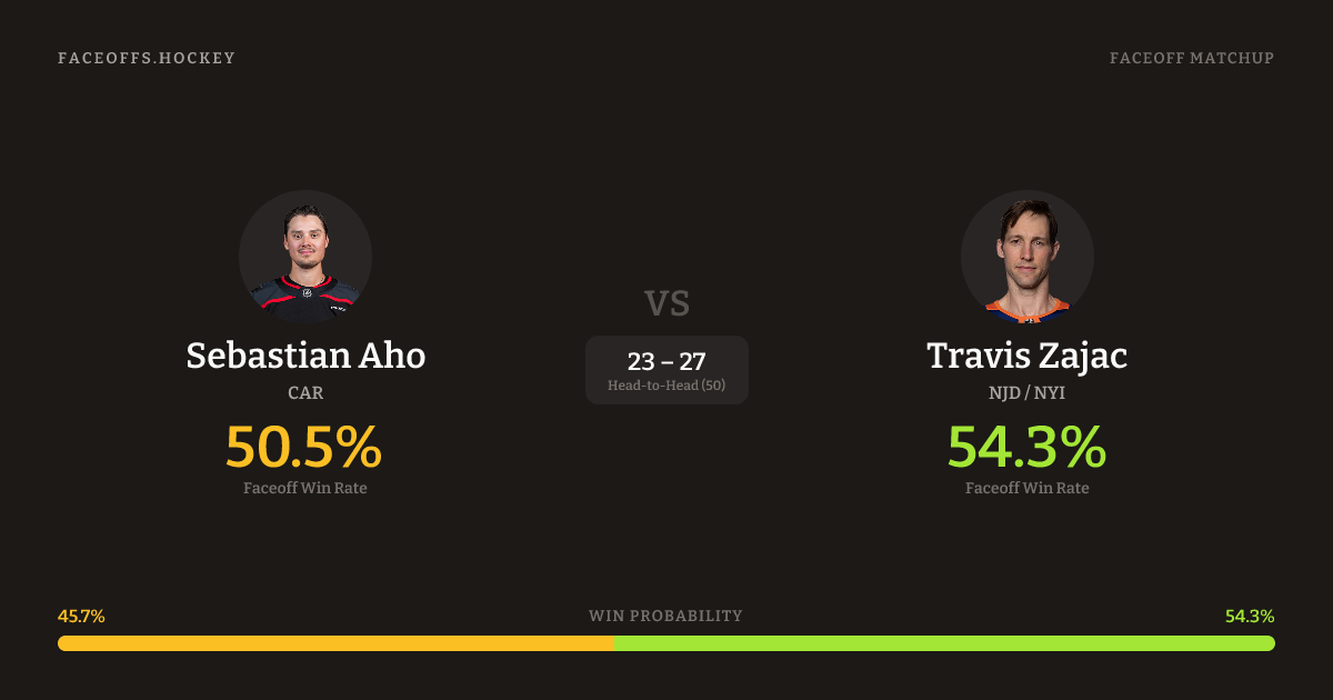 Sebastian Aho vs Travis Zajac — Faceoff Head-to-Head