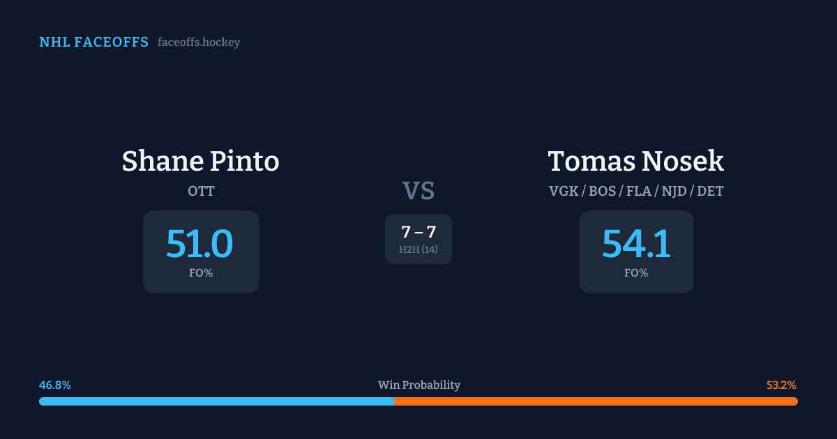 Shane Pinto vs Tomas Nosek — Faceoff Head-to-Head