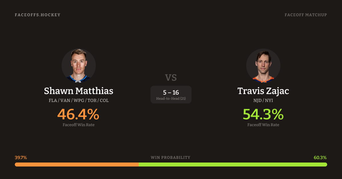 Shawn Matthias vs Travis Zajac — Faceoff Head-to-Head