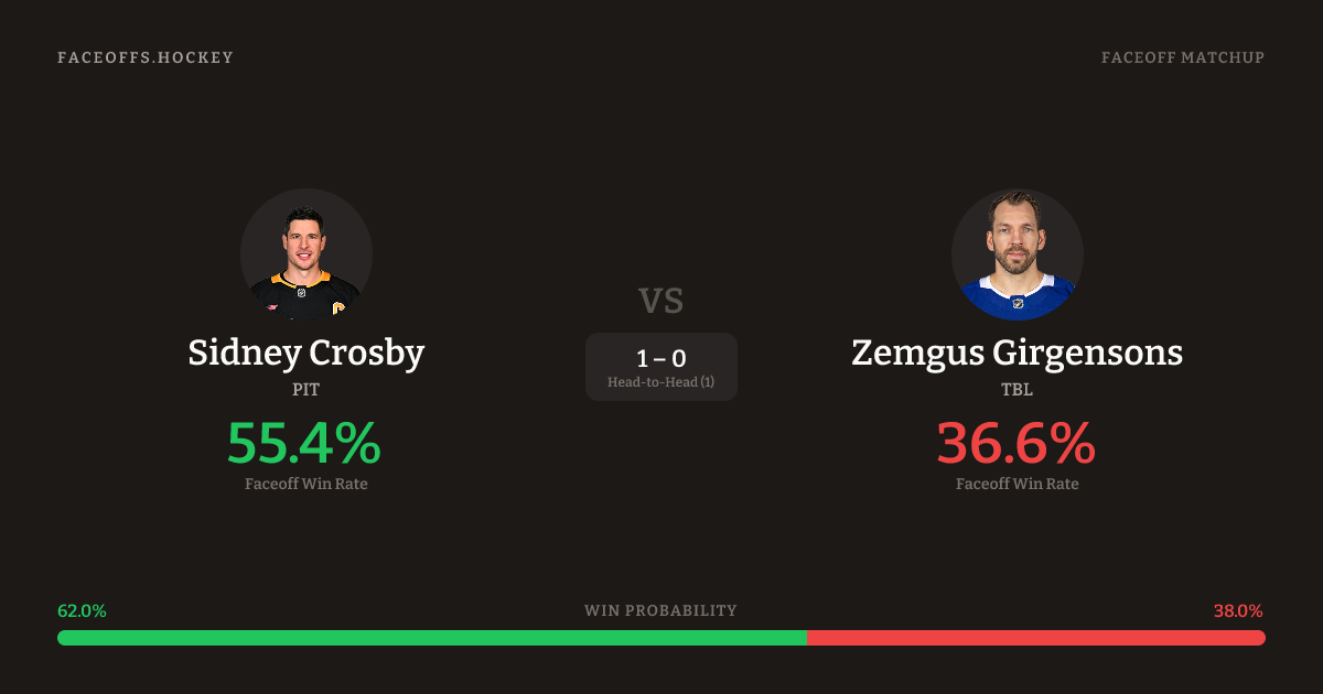 Sidney Crosby vs Zemgus Girgensons — Faceoff Head-to-Head