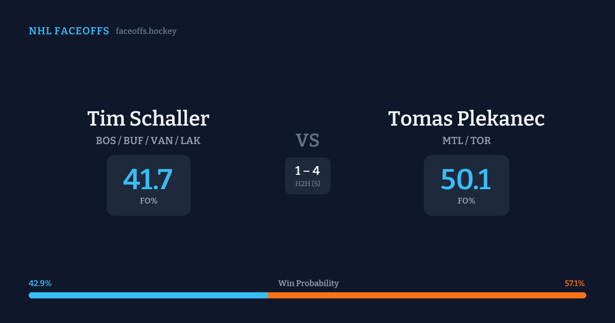 Tim Schaller vs Tomas Plekanec — Faceoff Head-to-Head