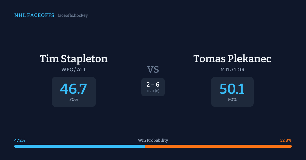 Tim Stapleton vs Tomas Plekanec — Faceoff Head-to-Head