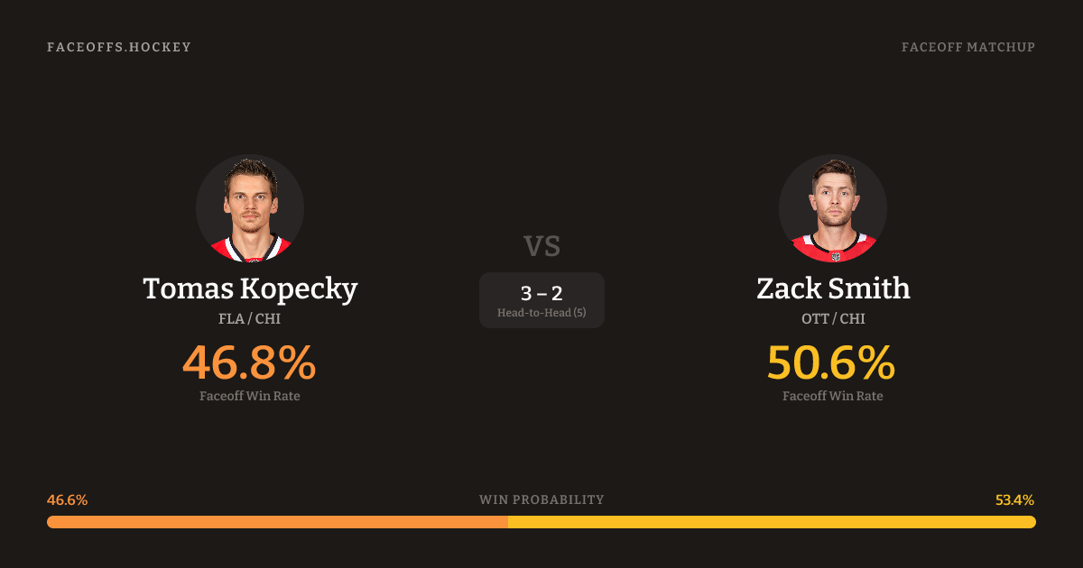 Tomas Kopecky vs Zack Smith — Faceoff Head-to-Head