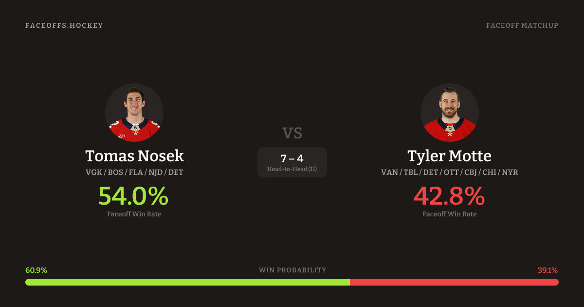 Tomas Nosek vs Tyler Motte — Faceoff Head-to-Head