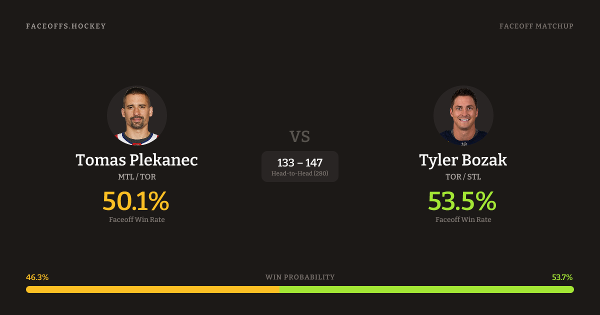 Tomas Plekanec vs Tyler Bozak — Faceoff Head-to-Head