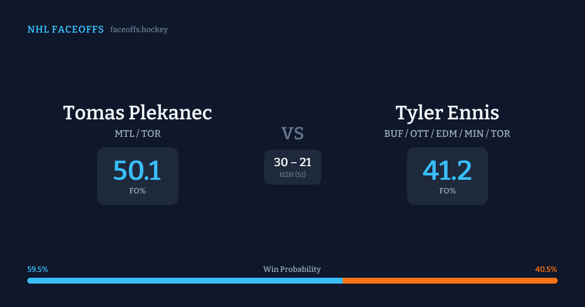 Tomas Plekanec vs Tyler Ennis — Faceoff Head-to-Head
