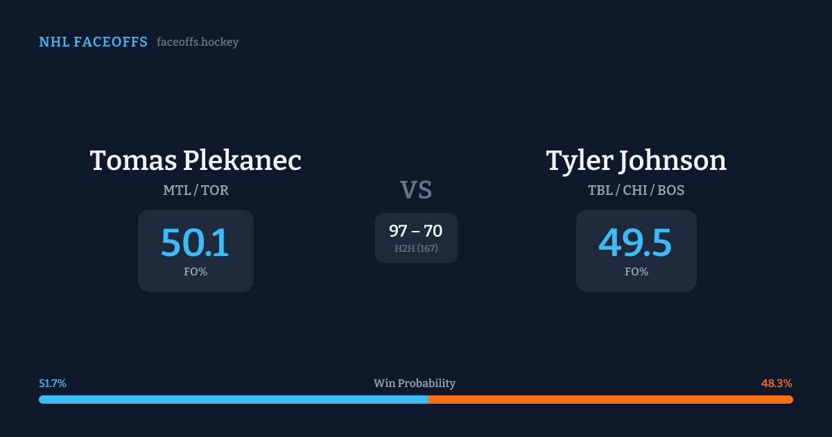 Tomas Plekanec vs Tyler Johnson — Faceoff Head-to-Head