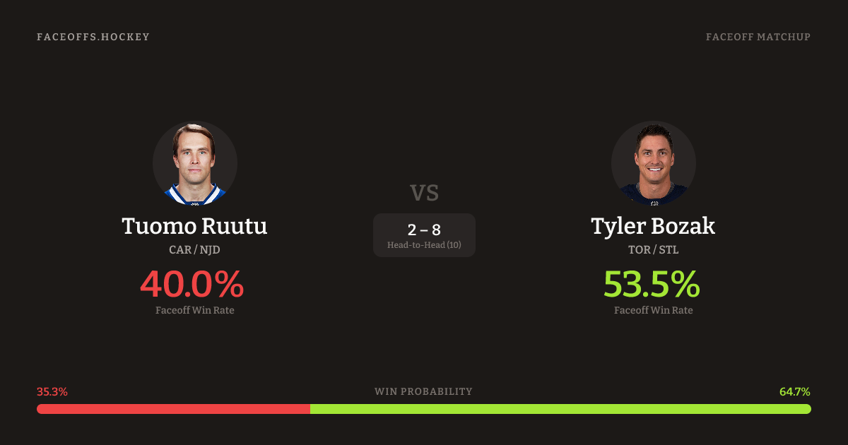 Tuomo Ruutu vs Tyler Bozak — Faceoff Head-to-Head